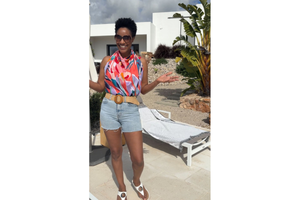 Style tip: Tuck it into a pair of high-waisted shorts, add a belt, and you’re good to go for brunch, sightseeing, or drinks on the terrace. This look has sunshine and sass written all over it.