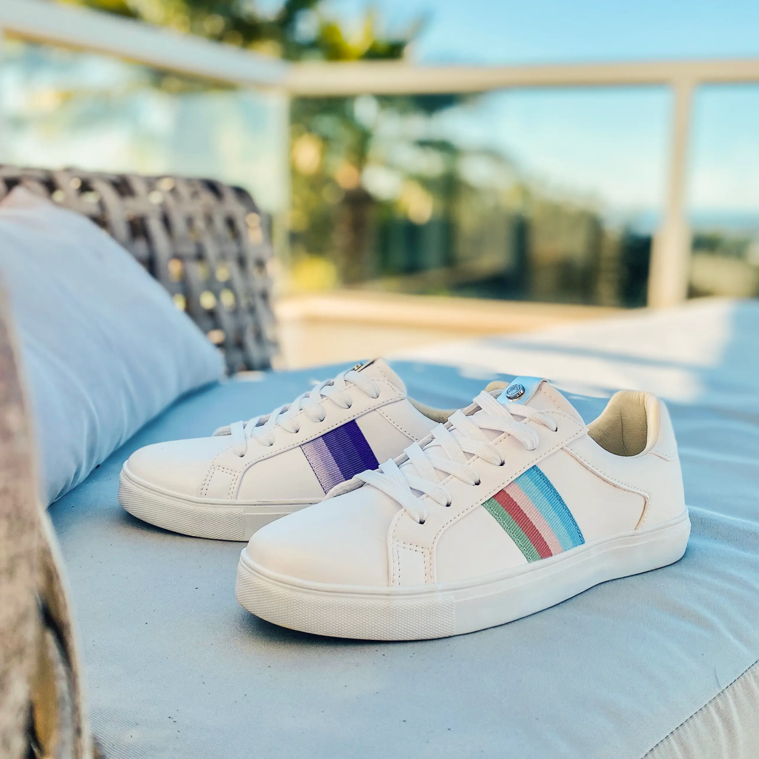 Feeling a little apprehensive? Don’t worry, transitioning from your comfortable fashion norms to exploring bolder colour choices can feel like a leap. First try pairing a subtle pair of white chunky trainers with a simple outfit you’re comfortable in and go from there.