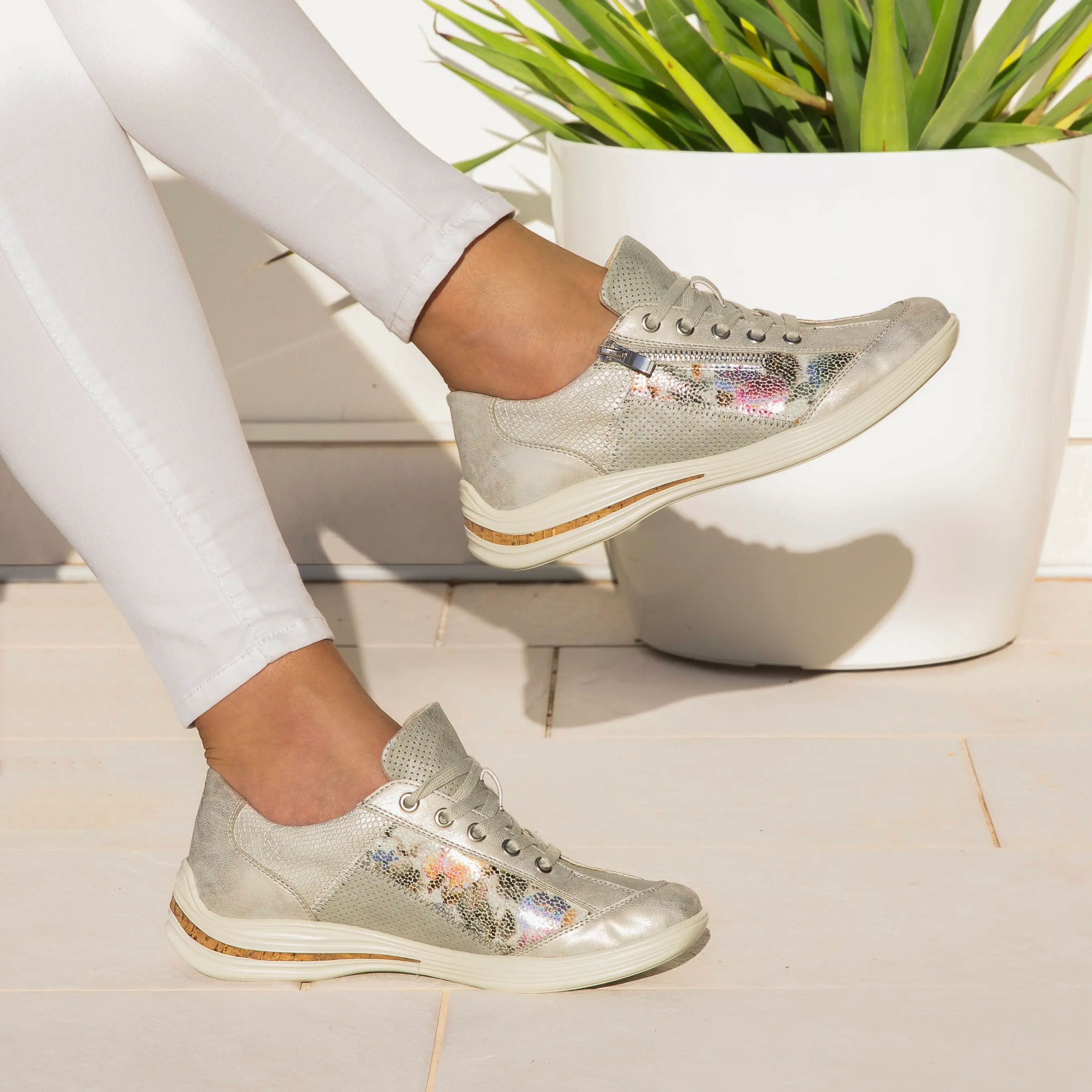 While a well-tailored suit paired with the traditional heels screams corporate chic, swapping the heels for a pair of sleek chunky trainers can add an unexpected twist, creating a balance between professionalism and contemporary style. Envision a smart, structured suit softened by a clean, minimalist pair of chunky trainers. Take these lightweight platform trainers from Rieker, paired with a cream or light-colour suit, this combination exudes a confident, modern aesthetic without compromising on comfort. At first, this new look might feel a little intimidating. After all, a suit and trainers might seem like an unlikely duo in a formal setting. But, by embracing this blend of formality and casual comfort, you can transform your work outfits into stylish yet practical statements.