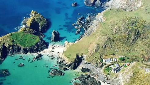 The next cove to discover is Poldhu. The headland here is the site of the Marconi monument, marking the location of the first transatlantic radio message transmission. Next is sandy Polurrian Cove, and then half a mile further on is Mullion Cove, a small traditional Cornish fishing harbour, with an off-shore island.