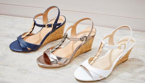 Braided and cork wedges will always look the part. For something a little off the beaten track, our nautical wedge heeled sandals are sure to stand out.
