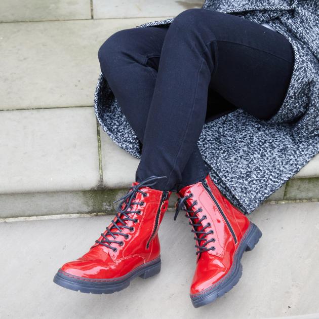 Embrace the unconventional in a pair of chunky lace-up biker boots. Laces lend interest and texture to smooth biker boots. Picking up on the texture of the laces, try pairing chunky lace-up biker boots with knitwear such as a jumper dress or a snuggly cardigan – matching tones and textures with tights and woolly accessories for chic and cosy style.